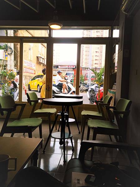 旁邊兩桌兩人位 綠色木椅顯得清爽