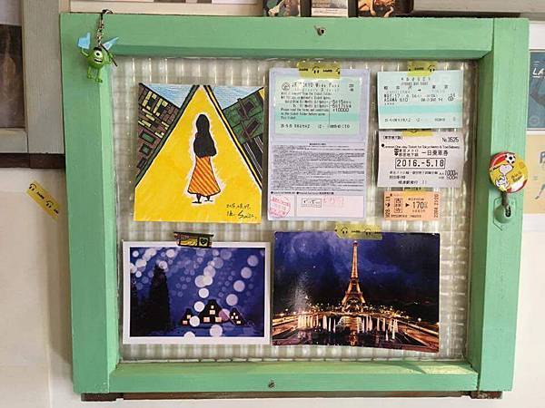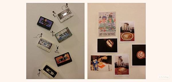 店內裝潢有著店主的小巧施 牆面貼滿了明信片做裝飾 其中卡帶最讓人會心一笑 瞬間復古味湧現