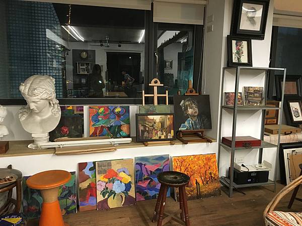黑色公寓藝文咖啡是整棟四層樓的建築,一二樓用餐區,三樓繪畫區,四樓畫展
